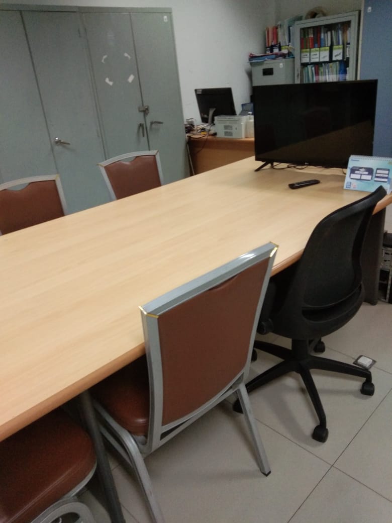 Ruang rapat biasanya dilengkapi dengan meja dan kursi untuk peserta rapat, serta fasilitas seperti proyektor, layar, papan tulis, atau peralatan audio-visual lainnya yang diperlukan untuk presentasi atau berbagi informasi selama rapat.